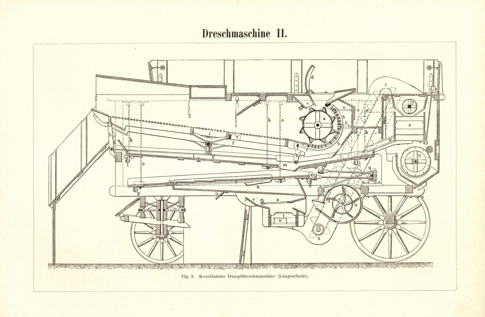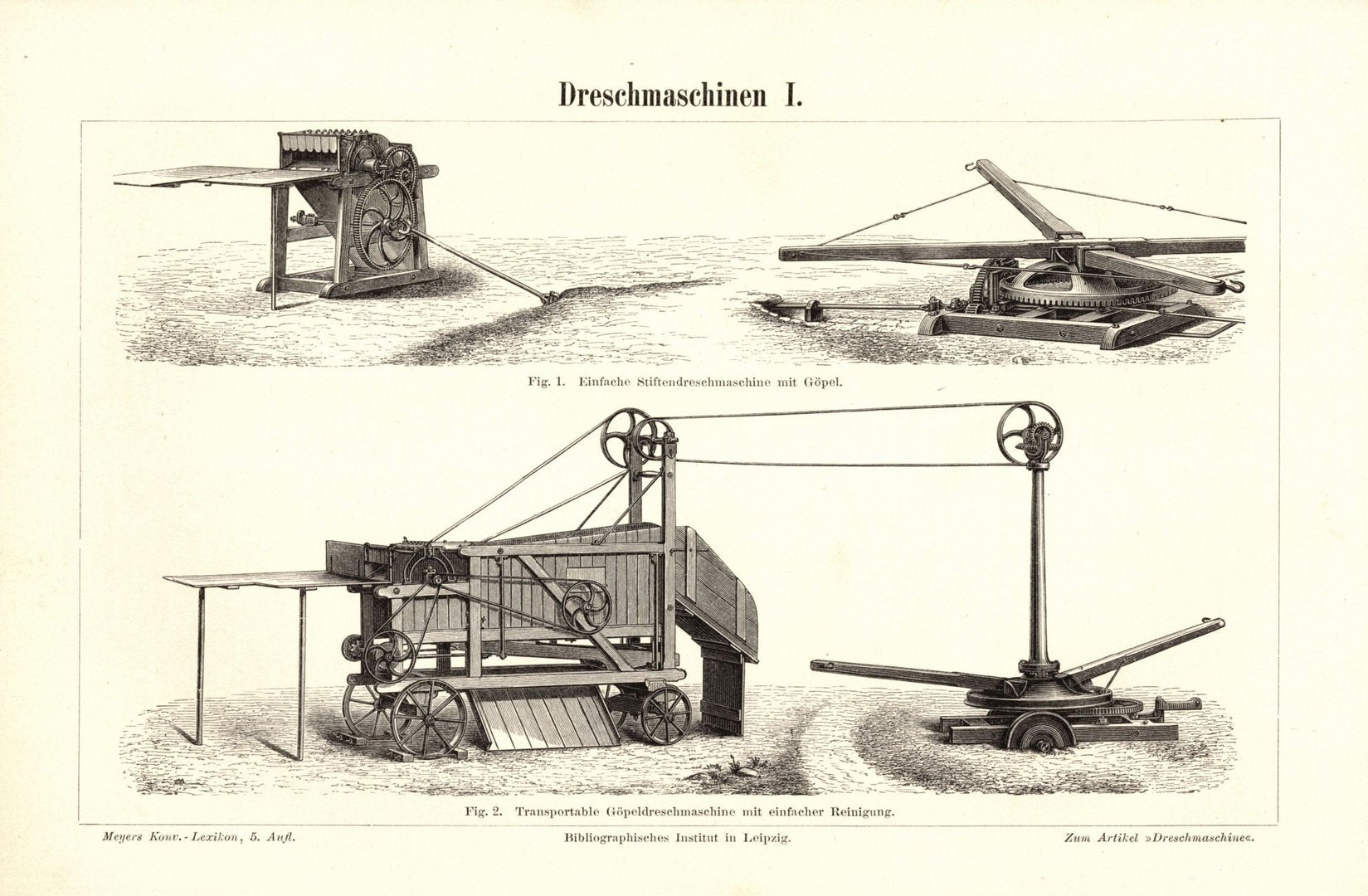 Dreschmaschinen I-II. Buchillustration (Stich) von 1895