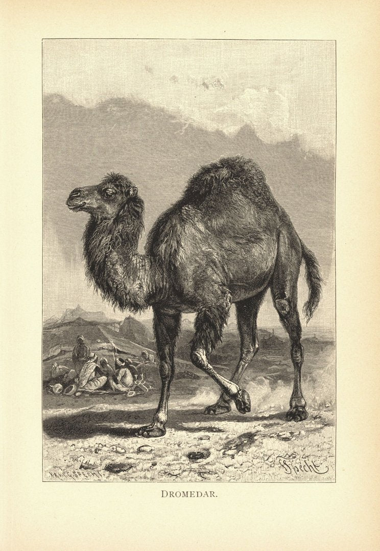 Dromedar. Buchillustration (Holzschnitt) von 1890
