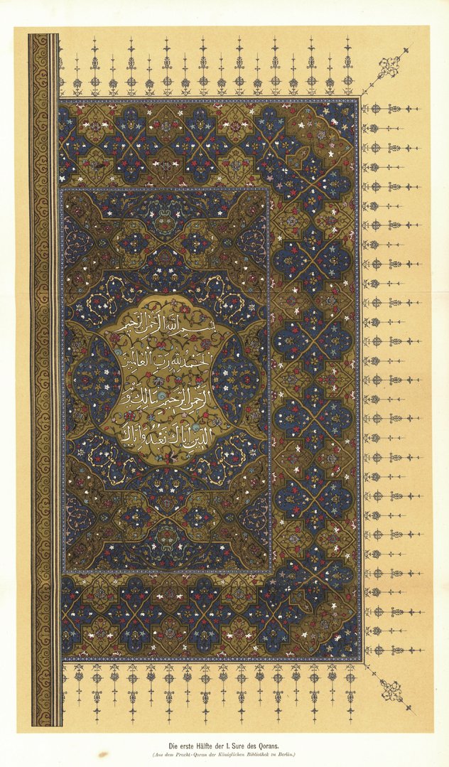 Faksimile der ersten Hälfte der 1. Sure des Korans. Lithografie von 1902