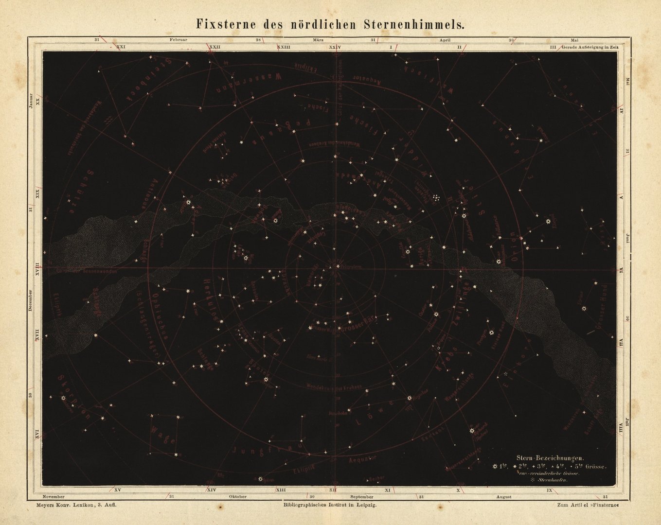 Fixsterne des nördlichen Sternenhimmels. Buchillustration von 1875