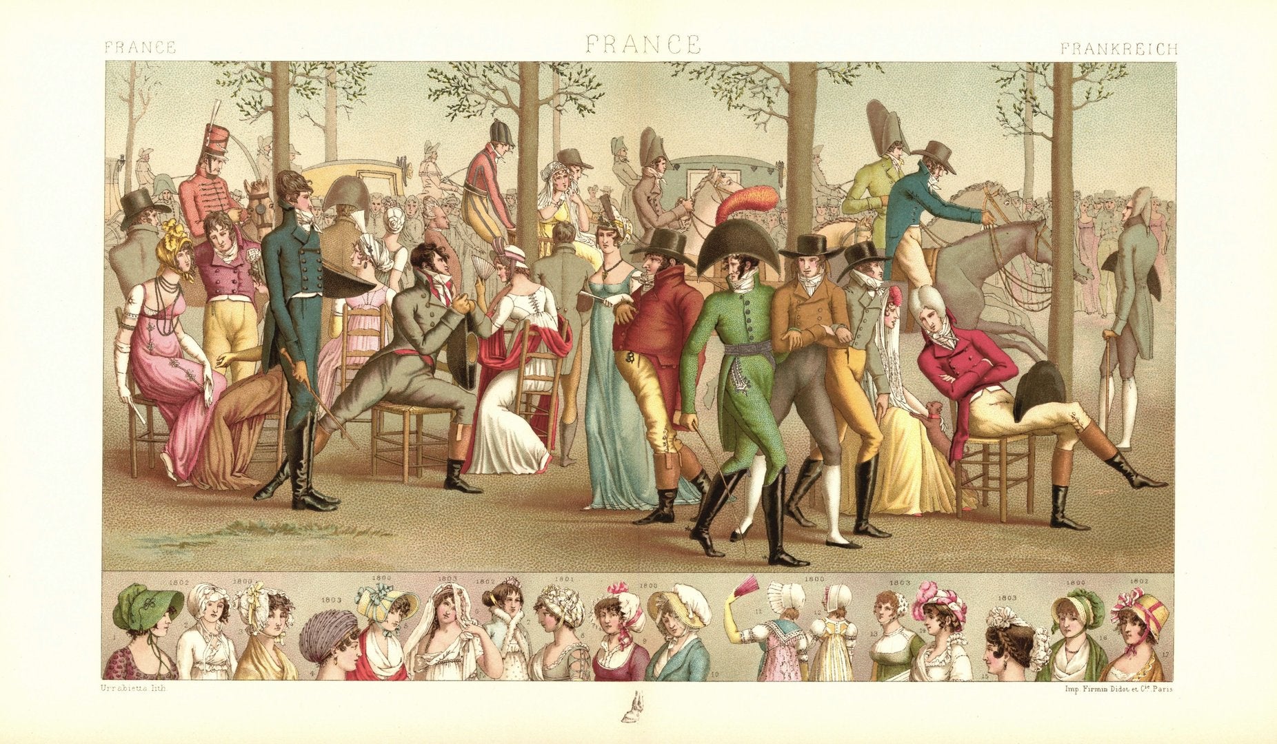 Frankreich. Beim Pferderennen. An der Promenade de Longchamp. 1802. Lithografie von 1888. (T408)