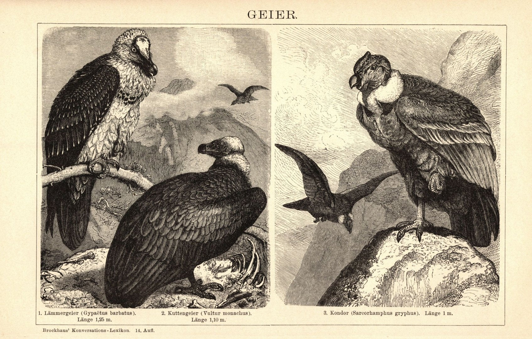 Geier. Buchillustration (Stich) von 1897