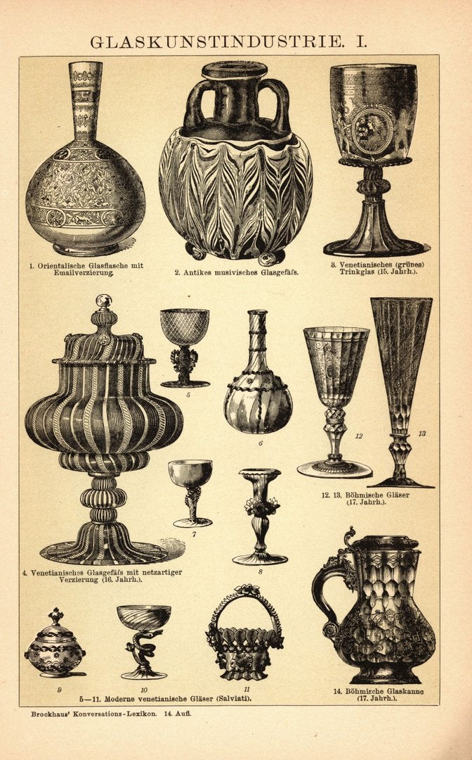Glaskunstindustrie. Buchillustration (Stich) von 1897