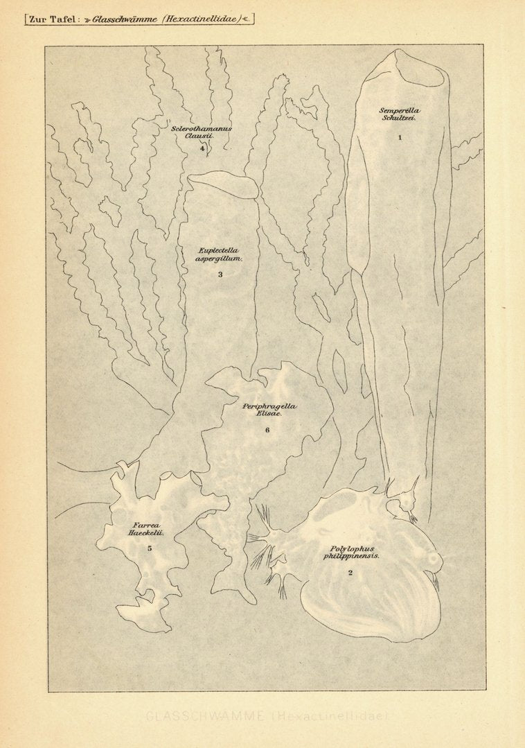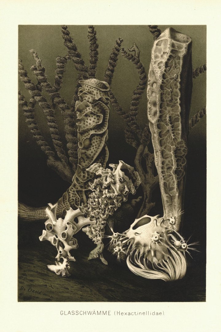 Glasschwämme. Lithografie von 1890
