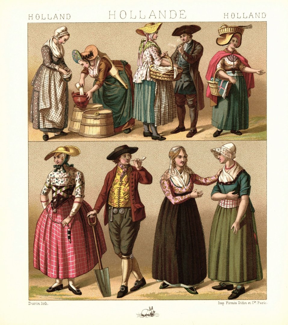 Holland. Traditionelle Kleidung. Beginn des 19. Jhd. Lithografie von 1888. (T420)