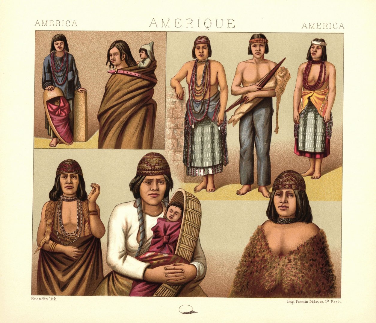 Indianer aus Oregon, Oberkalifornien und Kilimus von Oberkalifornien. Lithografie von 1888. (T82)