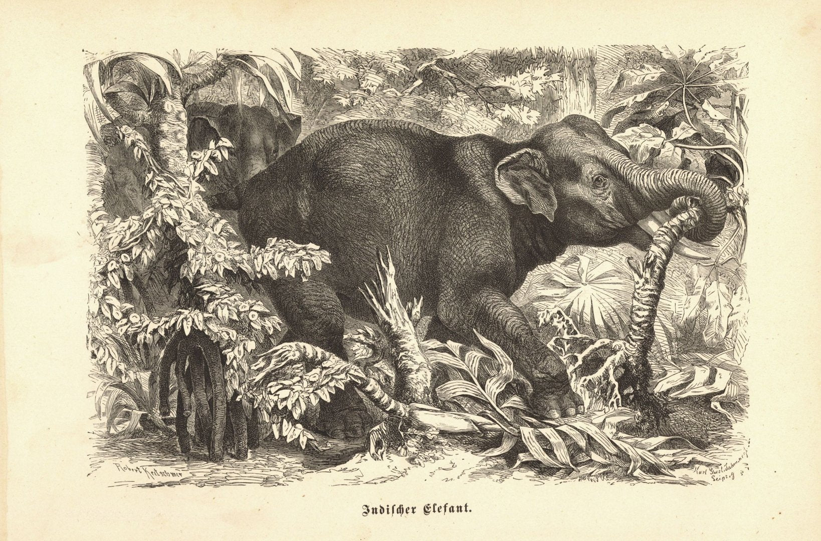 Indischer Elefant. Buchillustration von 1890