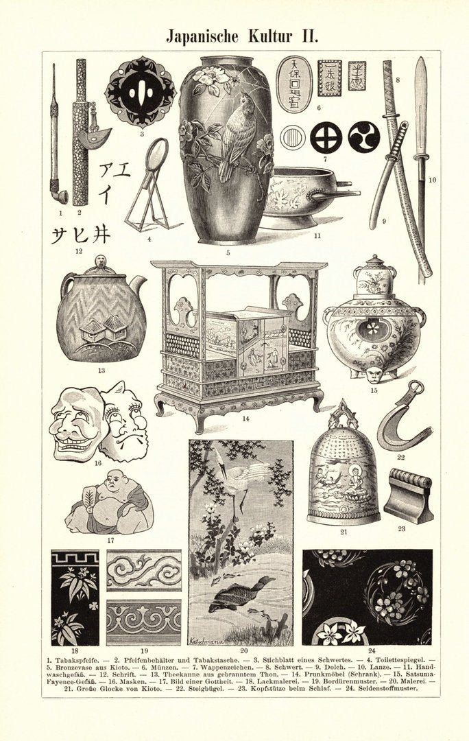 Japanische Kultur. Buchillustration (Stich) von 1896