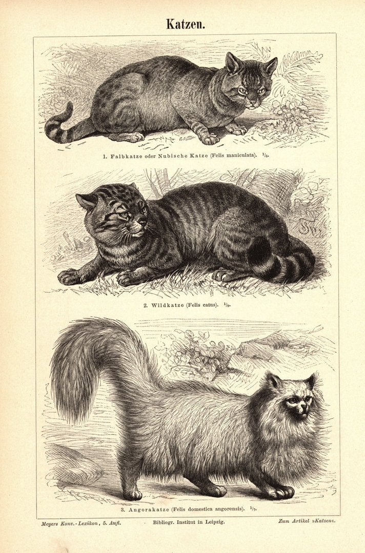 Katzen. Buchillustration (Stich) von 1896