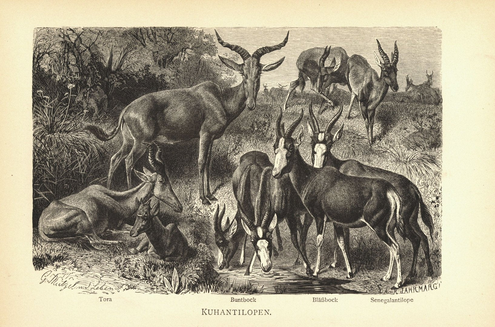 Kuhantilopen. Buchillustration von 1890