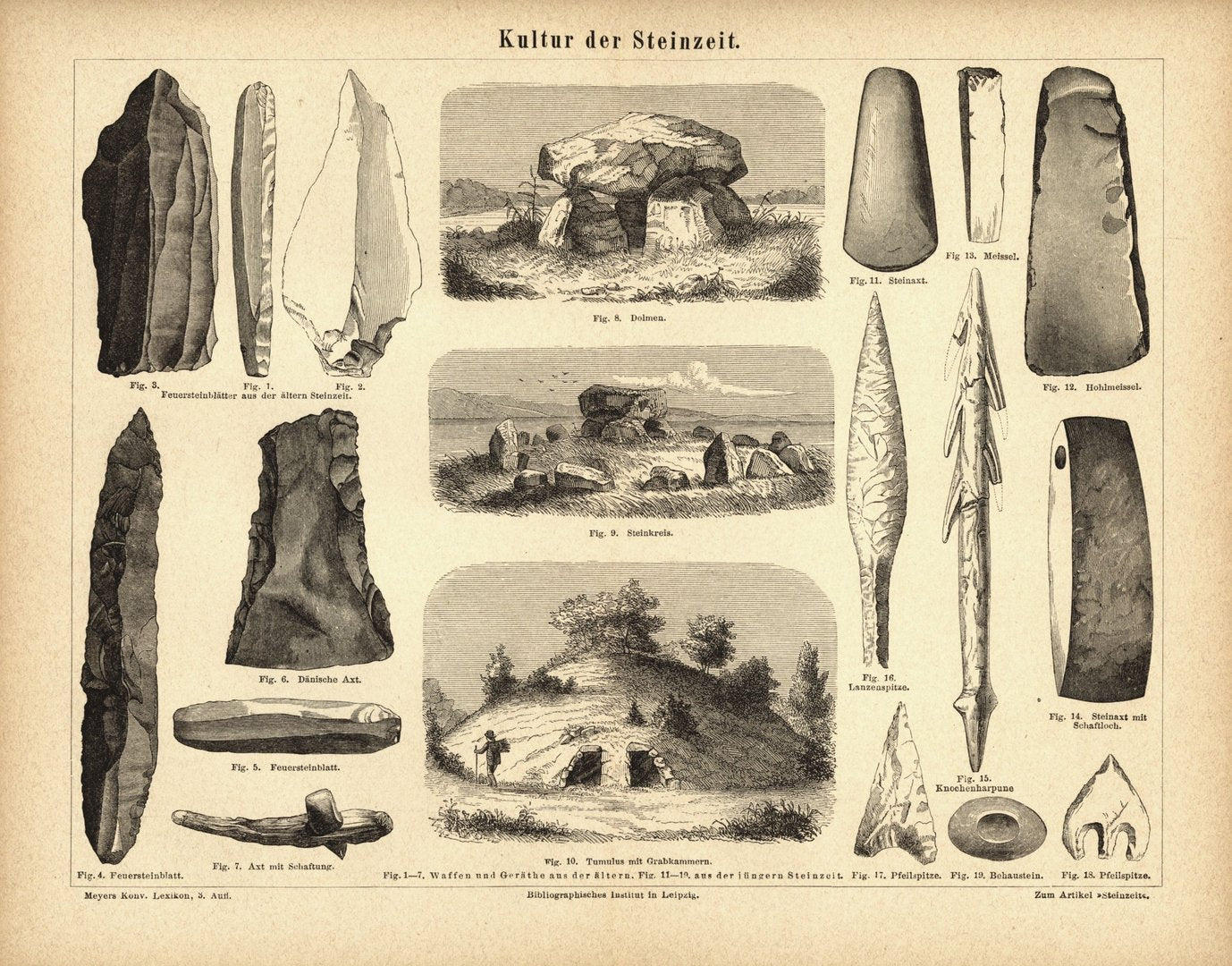 Kultur der Steinzeit. Buchillustration (Stich) von 1876