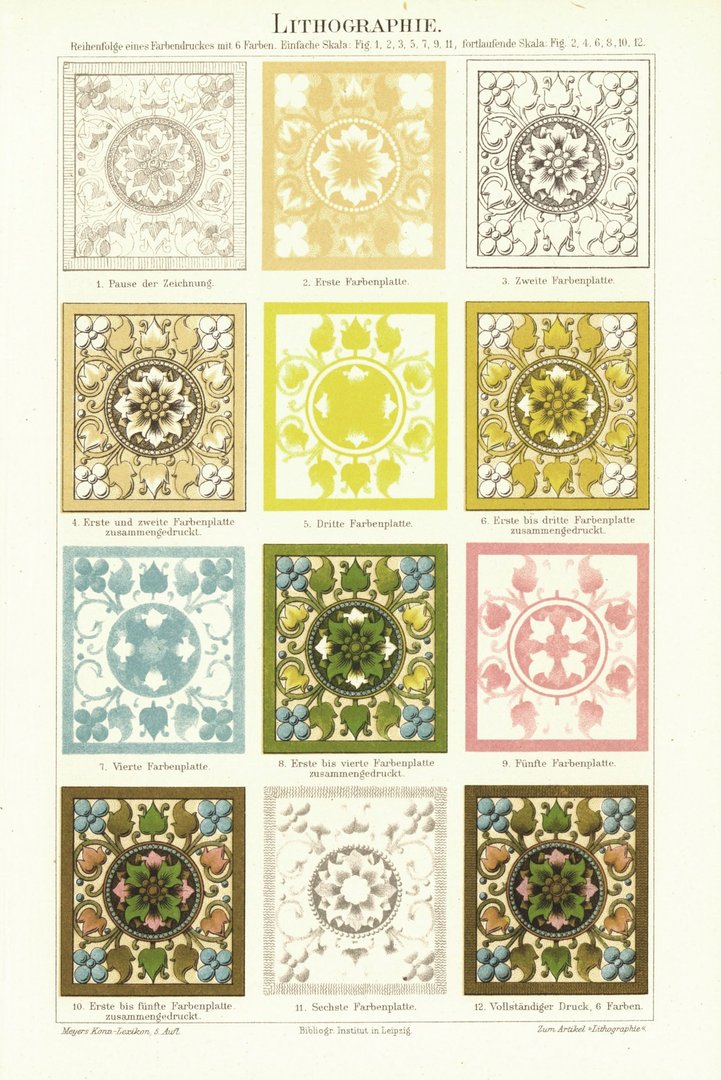 Lithographie-Technik, Reihenfolge des Farbendrucks. Lithografie von 1896