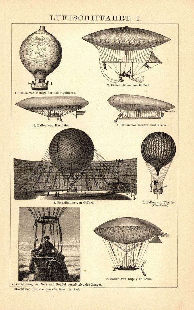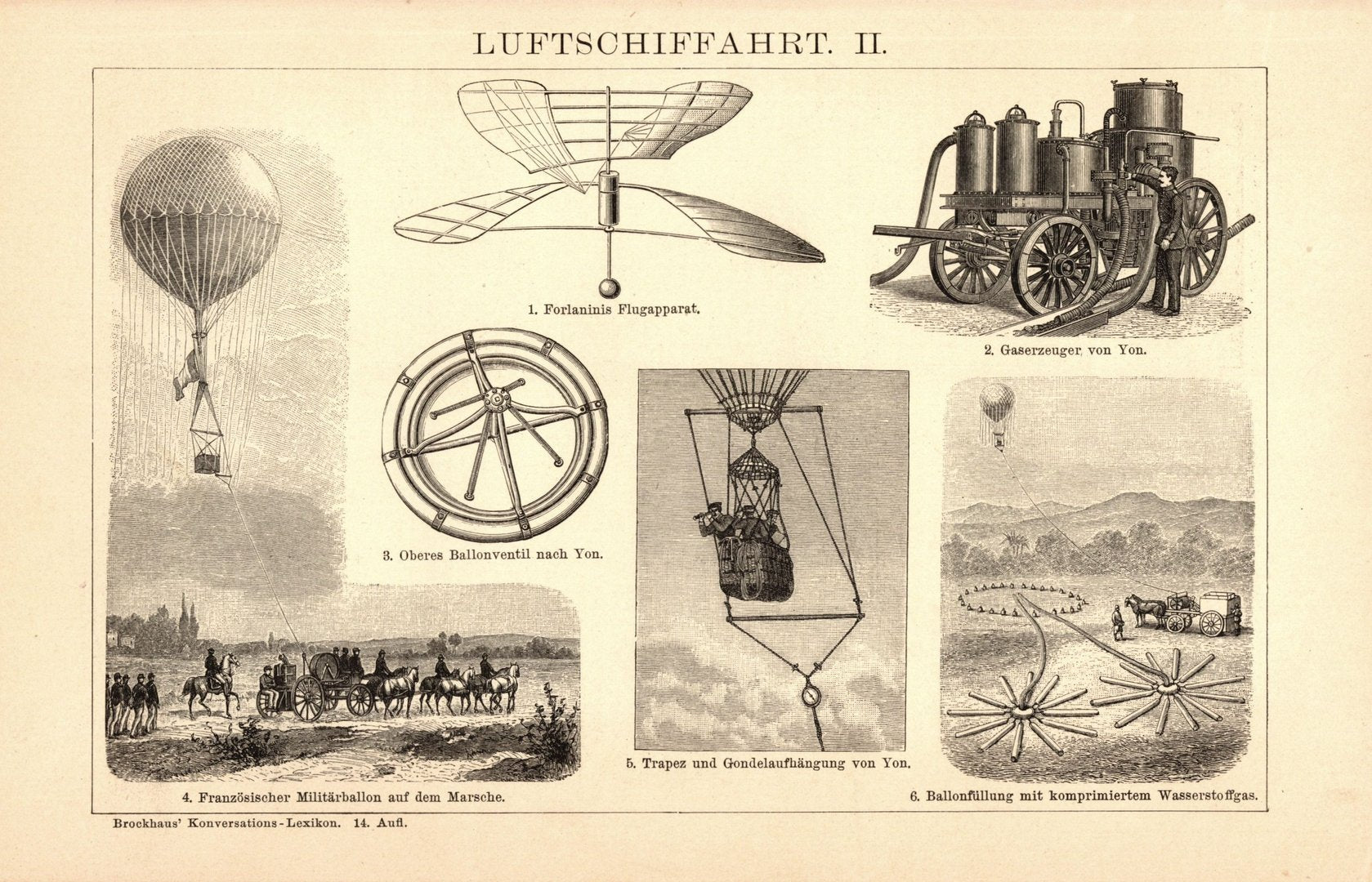 Luftschifffahrt. Buchillustration (Stich) von 1897