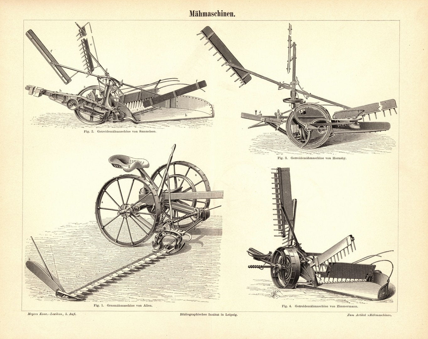 Mähmaschinen. Buchillustration (Stich) von 1896