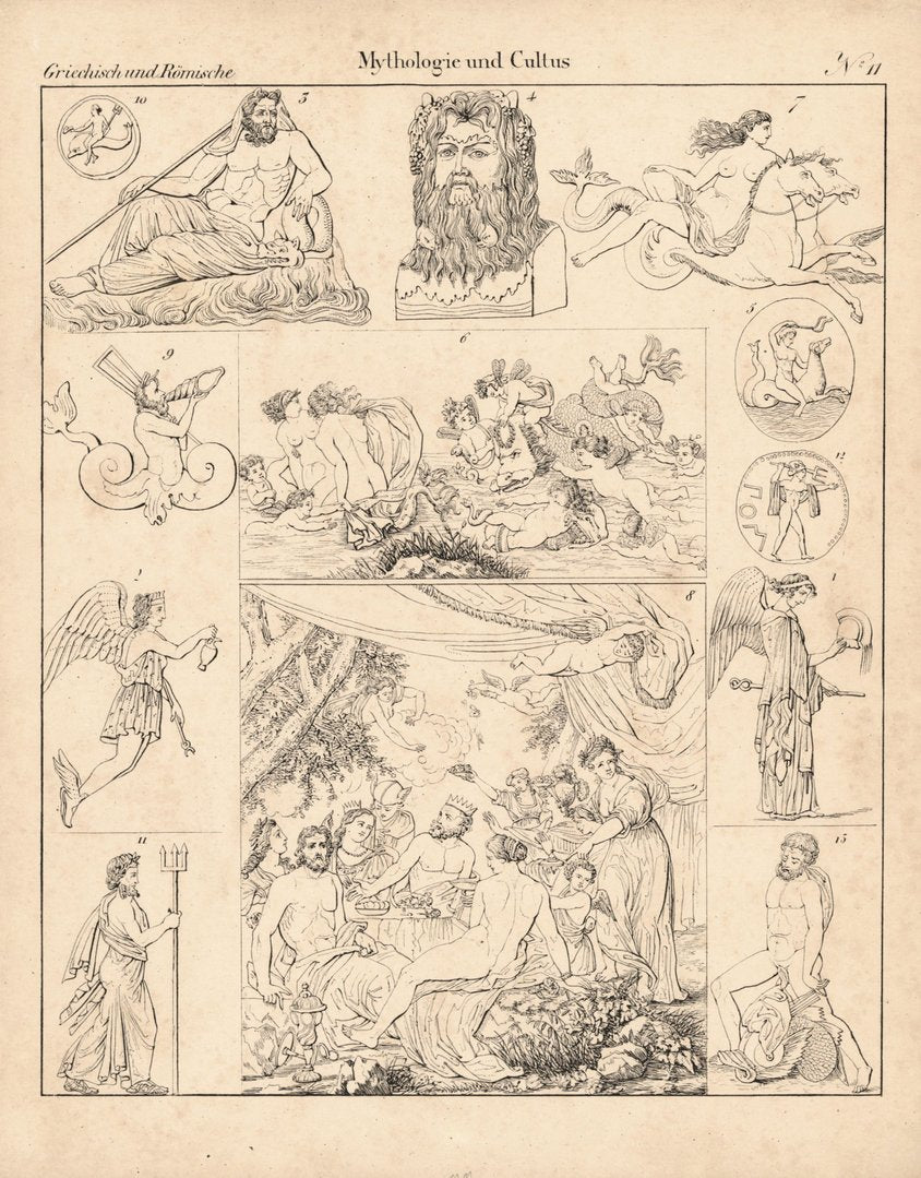Mythologie und Cultus Nr. 11. Griechisch und Römisch. Lithografiertes Blatt von 1830.