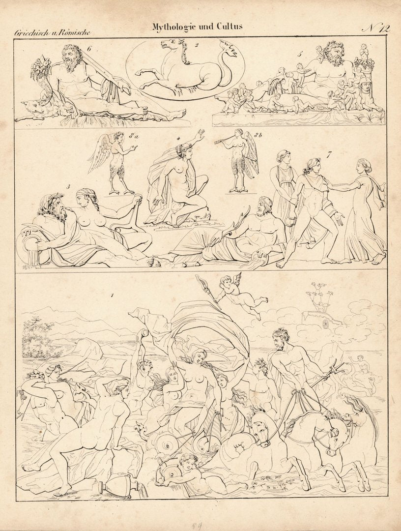 Mythologie und Cultus Nr. 12. Griechisch und Römisch. Lithografiertes Blatt von 1830.