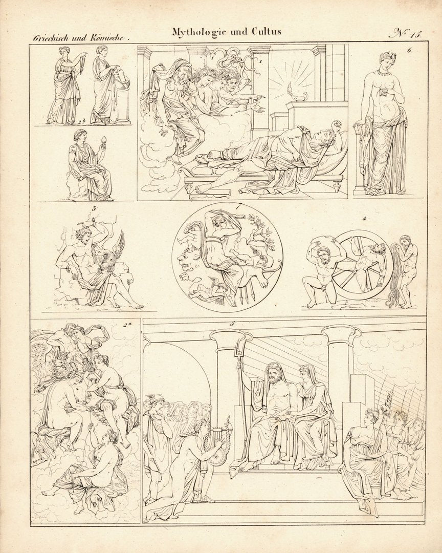 Mythologie und Cultus Nr.15 . Griechisch und Römisch. Lithografiertes Blatt von 1830.