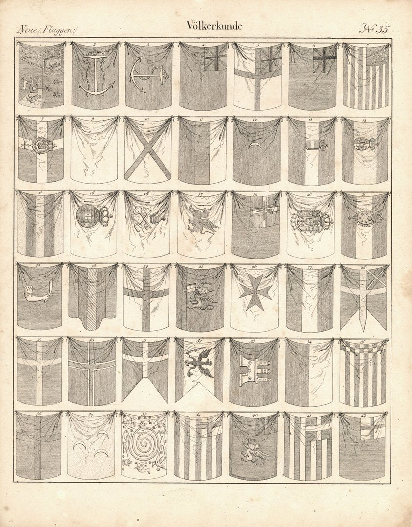 Neue Flaggen, Völkerkunde Nr. 35. Lithografiertes Blatt von 1830.