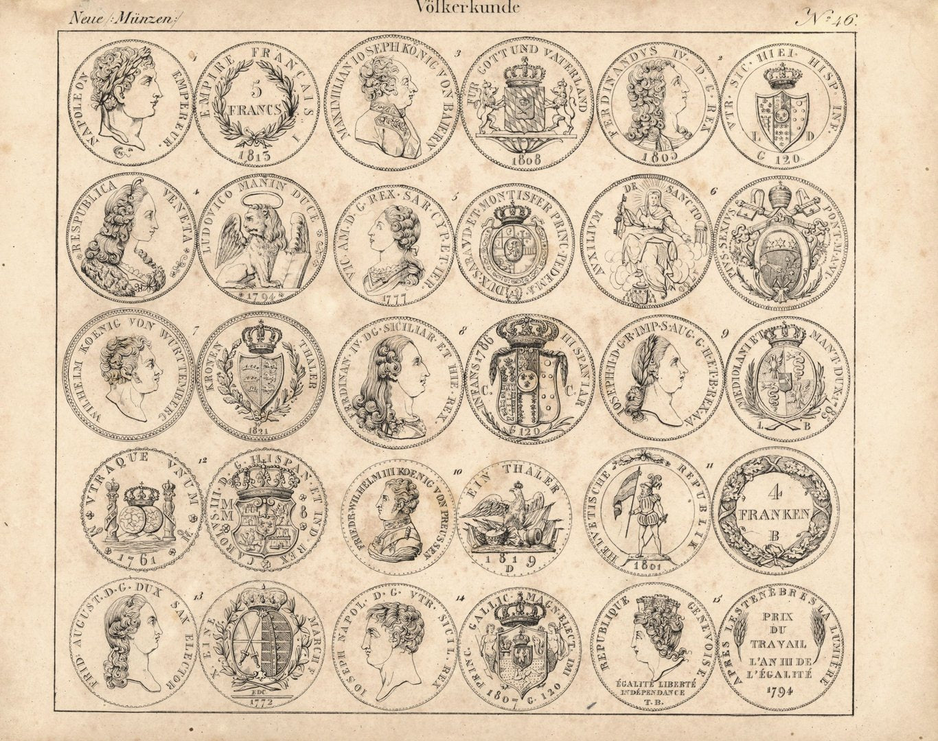 Neue Münzen, Völkerkunde Nr. 46. Lithografiertes Blatt von 1830.