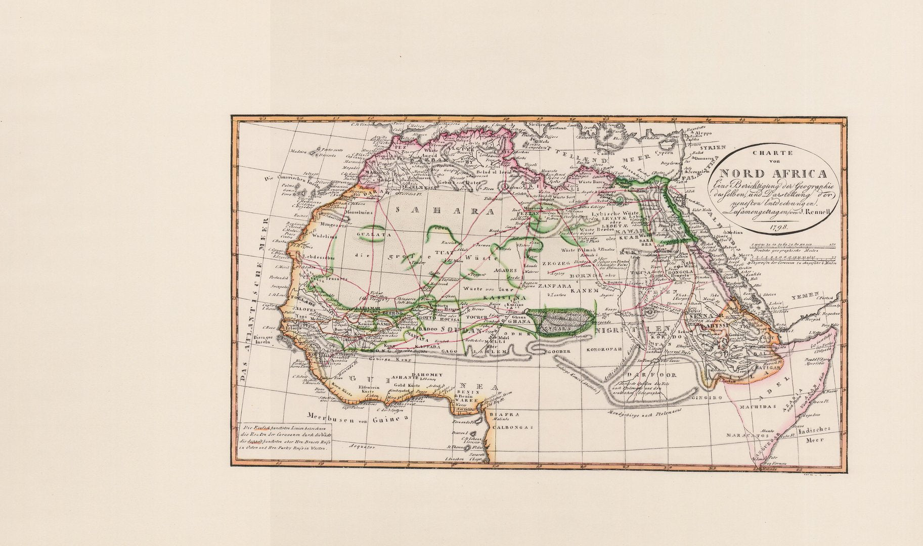 - Titel der Karte: Charte von Nord Africa. Eine Berichtigung der Geographie desselben, und Darstellung der neuesten Entdeckungen 1798.