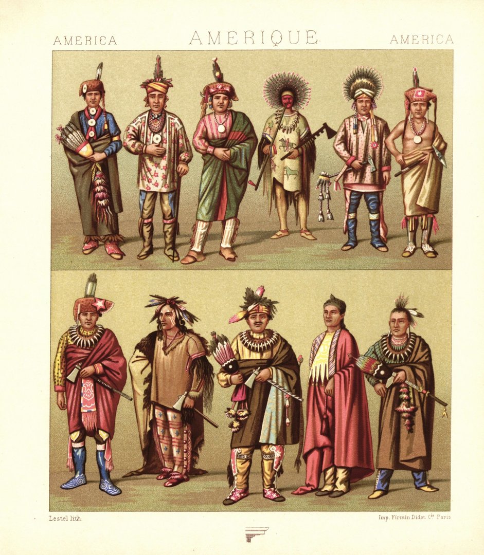 Nordamerika. Indianer von Kansas und Nebraska, Iow, Lakota, Pawnie. Lithografie von 1888. (T81)