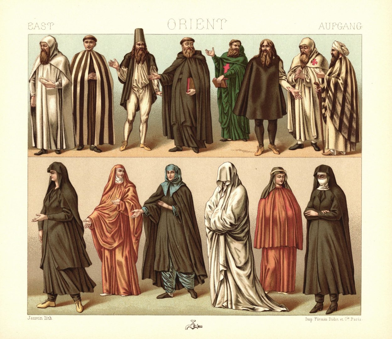 Orient. Christliche Mönche und Ordensangehörigen. Lithografie von 1888. (T147)