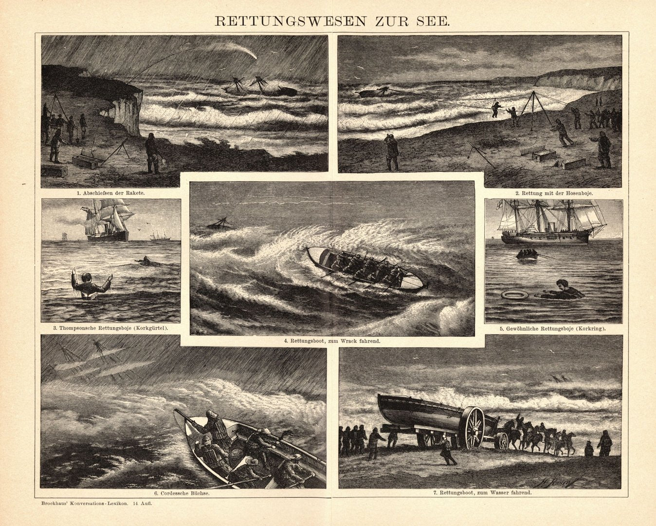 Rettungswesen zur See. Buchillustration (Stich) von 1897