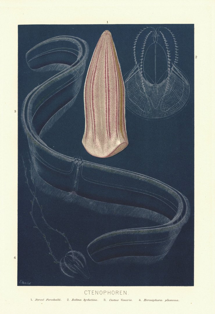 Rippenquallen, ctenophoren. Lithografie von 1890