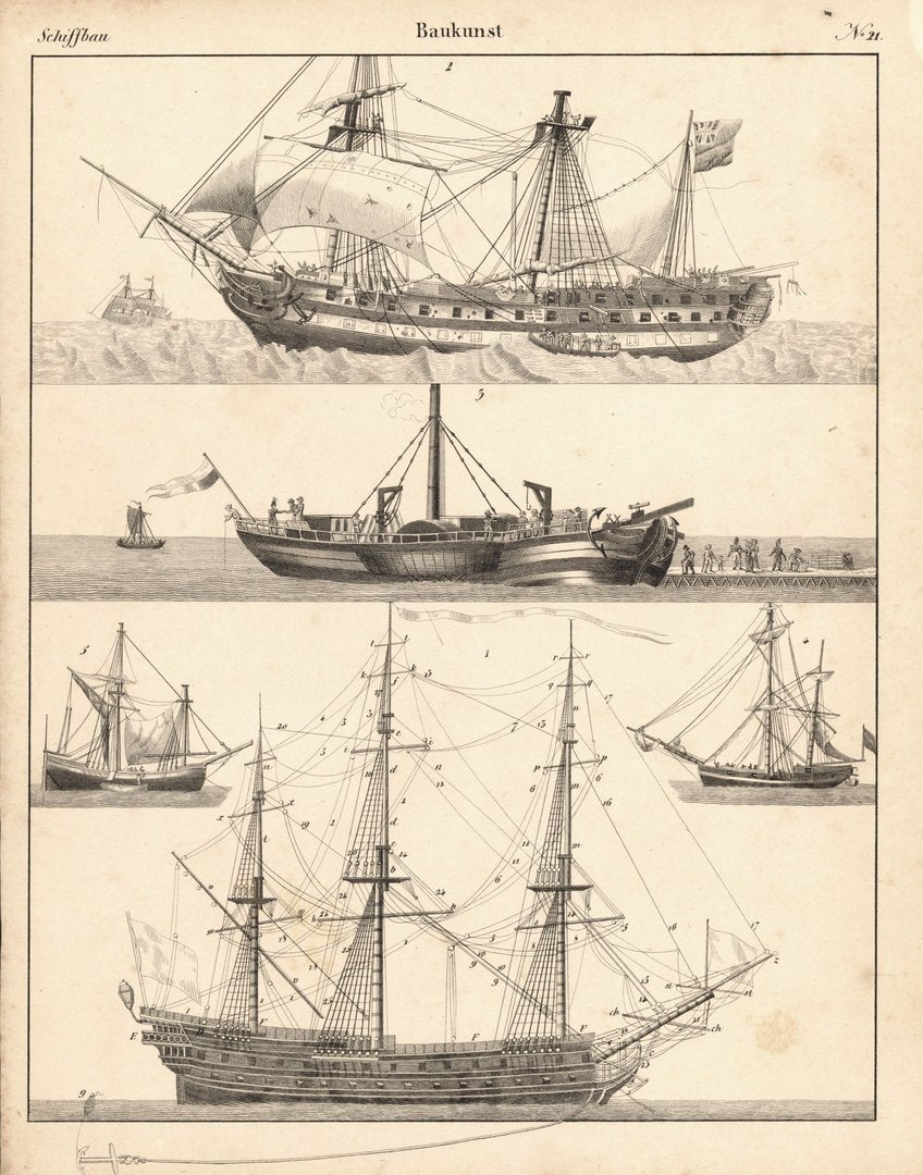 Schiffbau, Baukunst. Nr. 21. Lithografiertes Blatt von 1830.