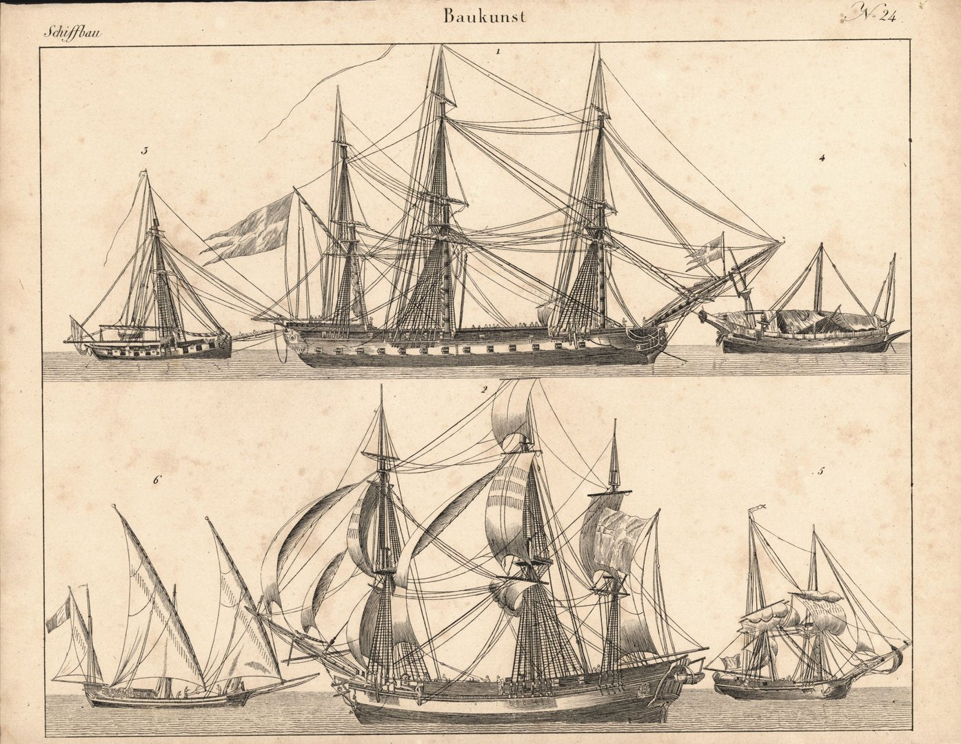 Schiffbau, Baukunst. Nr. 24. Lithografiertes Blatt von 1830.