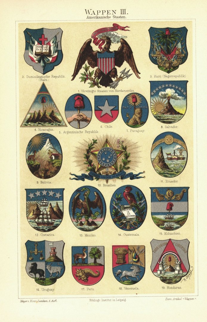 Wappen III, Amerikanische Staaten. Lithografie von 1897