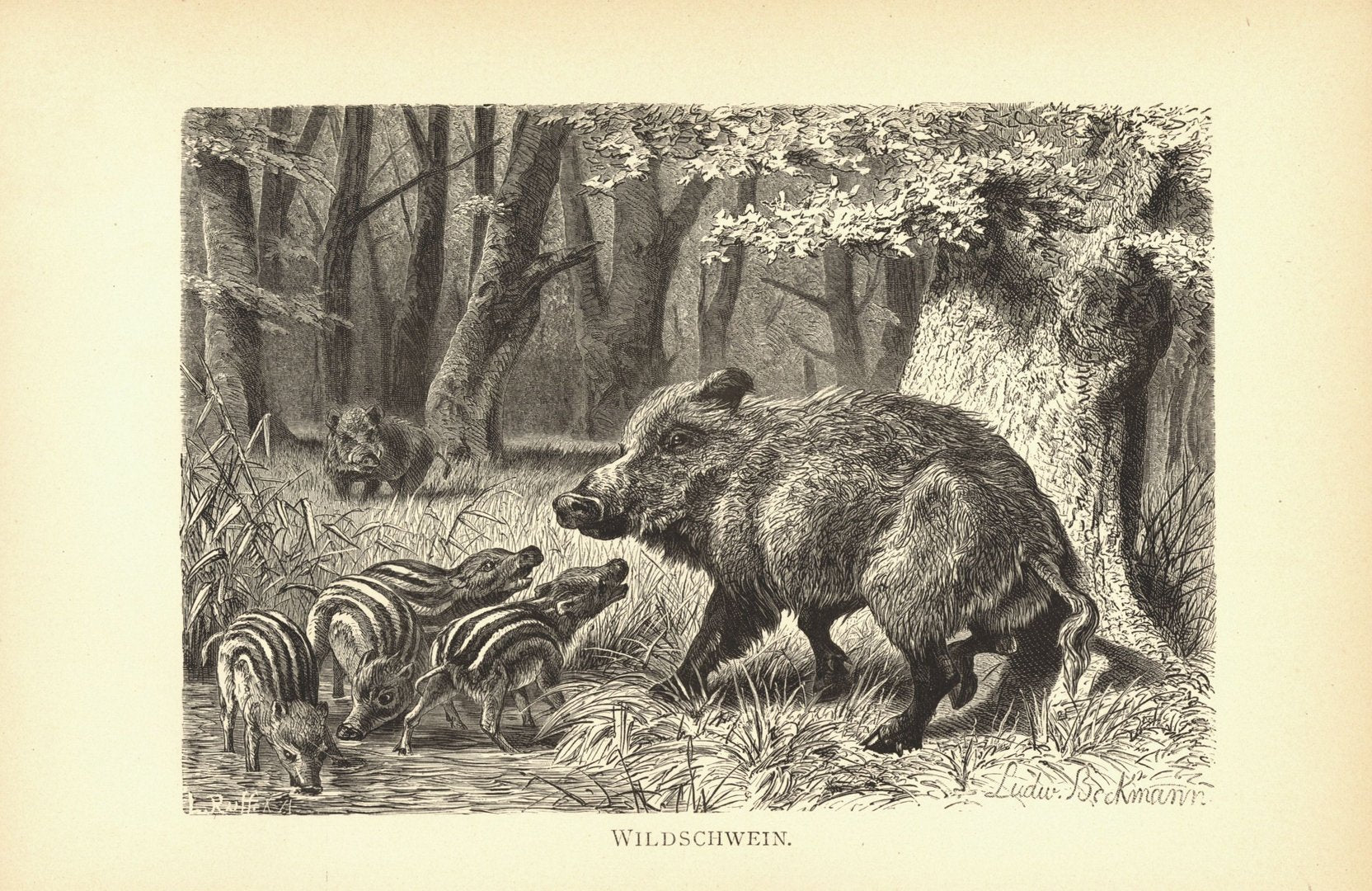 Wildschwein. Buchillustration von 1890